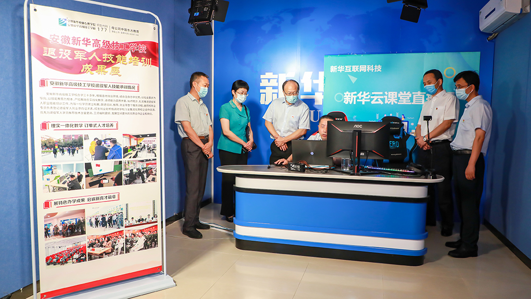时值暑期,安徽新华高级技工学校的退役军人学员正通过“新华云课堂”远程学习计算机网络应用课程,指导老师在线讲授相关技能并逐一答疑。通过考察,指导组对各院校完善的基础设施、专业的师资力量、系统的培训课程均表示高度认可。