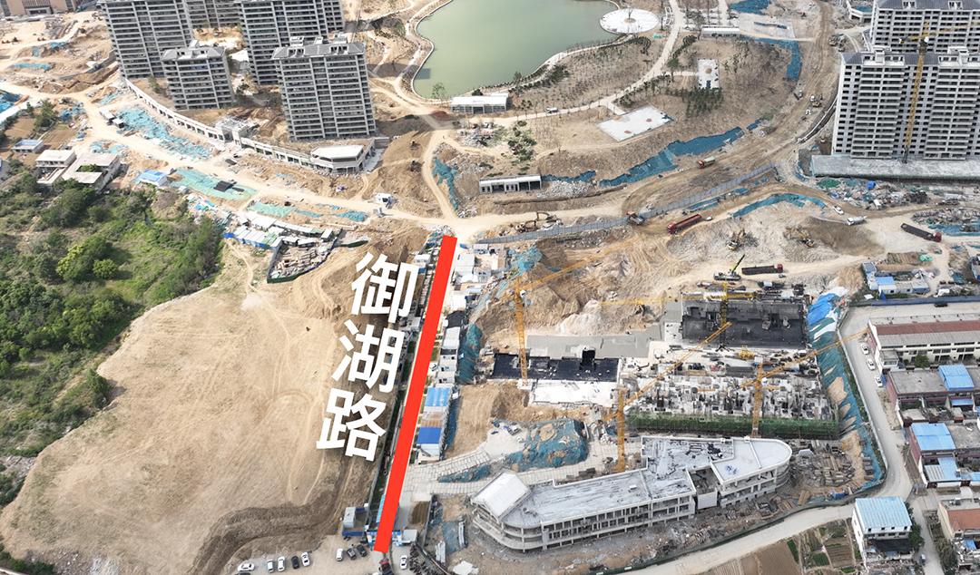 御湖路北通环湖路,南接御道大街,道路向南延伸,象征着向阳而生,预示着御湖庄园美好的未来,行于此路,有种御领山水的气势,因此该条道路命名为御湖路。