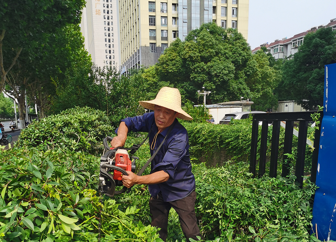 他们巧手修剪,勾勒青枝绿叶;他们精心种植,放眼花繁叶茂。一双巧手打造园区美景,所到之处鸟语花香醉人。正因为有了他们的勤恳才有了园区的绿意盎然。